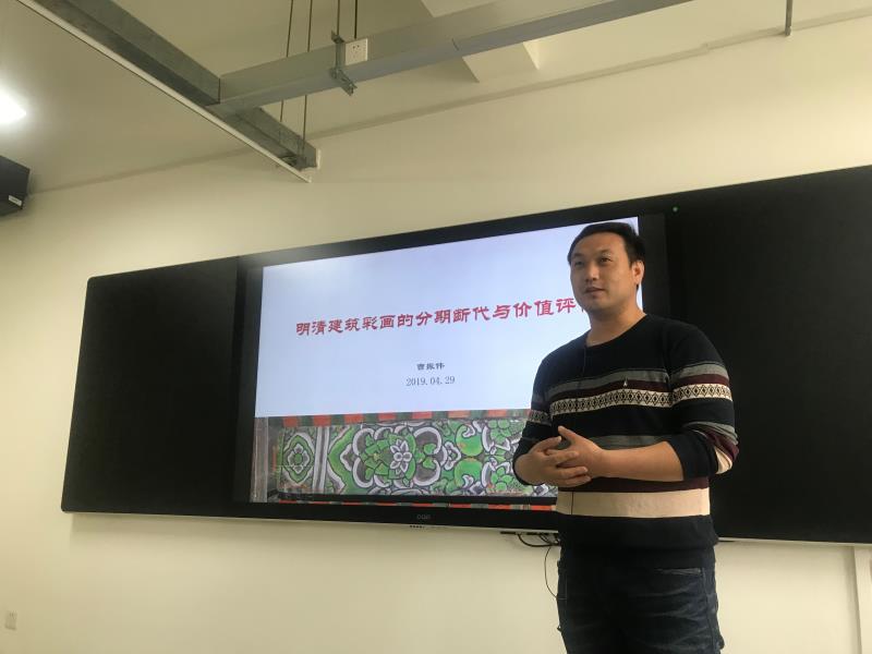 4月29日下午,故宫博物院高级工程师曹振伟先生来yl23455永利官网给大家做学术讲座,讲座题目为:明清皇家建筑彩画年代鉴定和价值评估。学院师生50余人参加了此次讲座。
